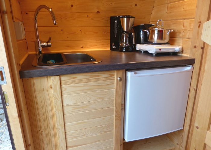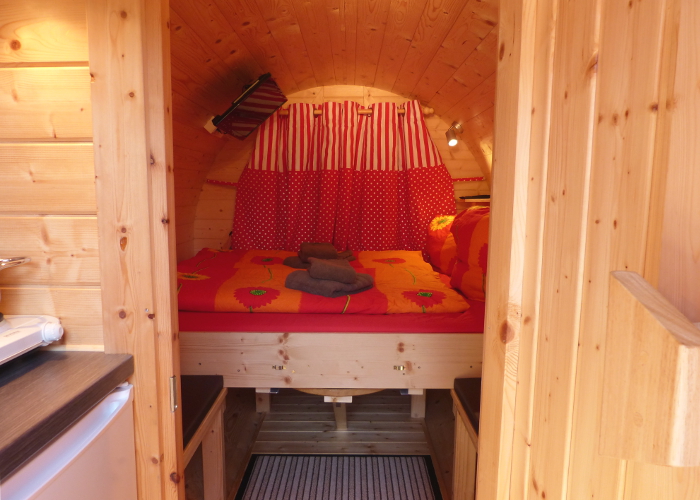 Unser Holzfaß “Lutki” ist gemütlich eingerichtet und läßt (“faßt”) keine Wünsche offen . . .