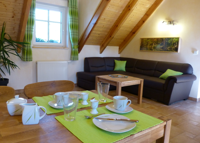 Diese Wohnung ist im 1. Obergeschoß gelegen, ca. 50 m² groß und für max. 2 Erwachsene + 2 Kinder.
